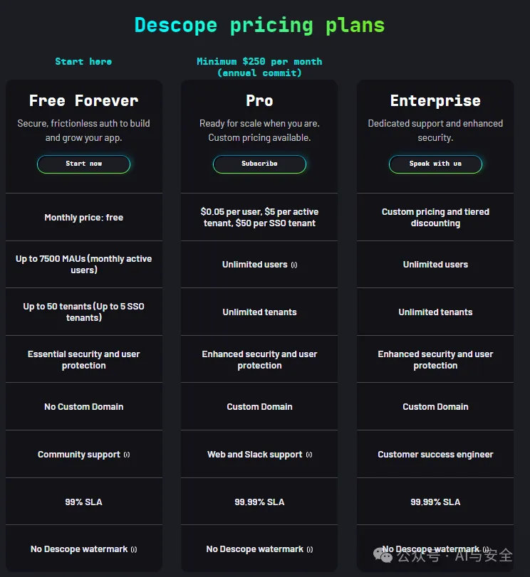 按以上观点,Descope的价值还要怀疑吗?至于价钱,好东西就是要贵一些。投个便宜的,哪天关门,血本无归,是不是更贵?